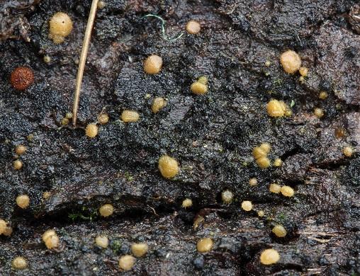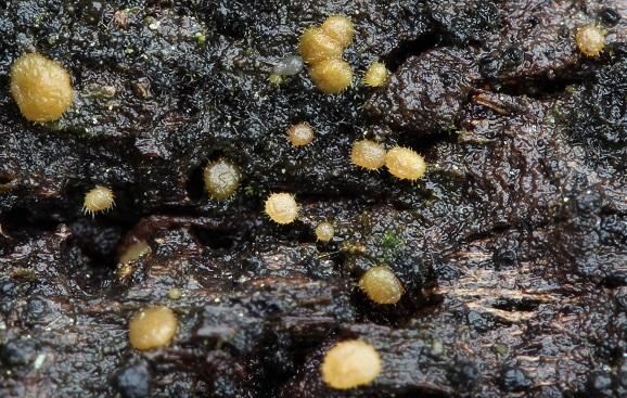 Tengo esta colección del invierno pasdo, están recolectados en un lugar húmedo, en corteza de Prunus dulcis, aparentemente sin presencia de excremento de animales, por su aspecto morfológico podíamos pensar en Lasiobolus sp, pero creo es diferente, no presenta textura prismática en el margen, también las esporas parecen diferentes, son como en Scutellinia, gutuladas y ornamentadas y esta especie no está relacionada con excremento de animales.