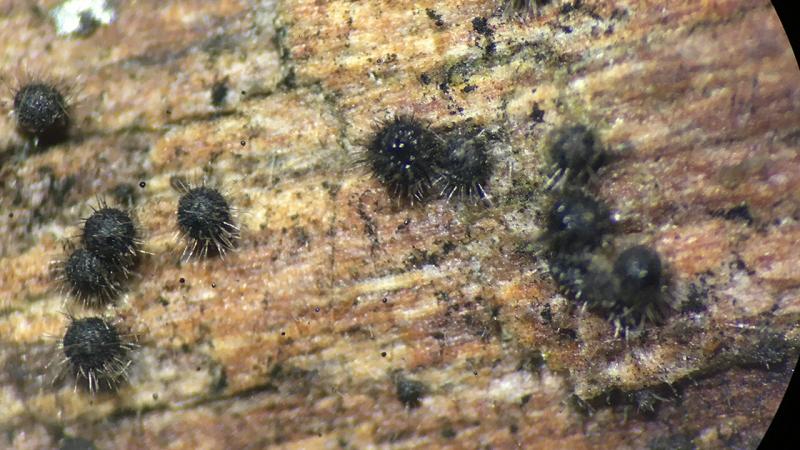 Black perithecia with spines