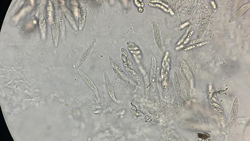 Ascosporas: 19-25 x 7-9 µm , with septa, warty with 2-4 guttulas