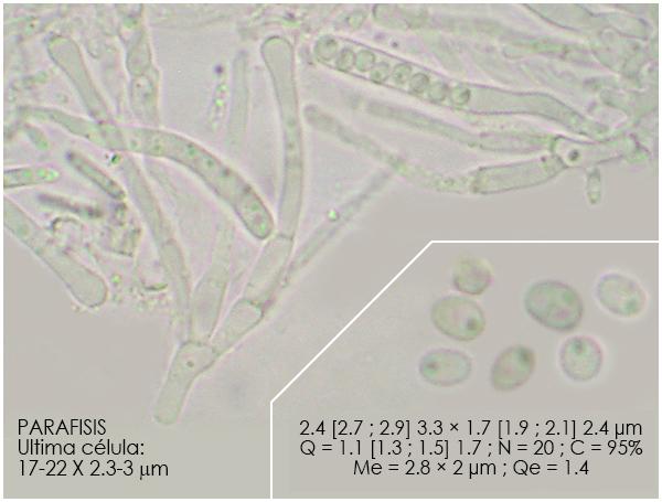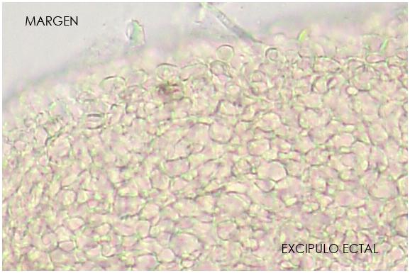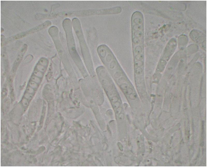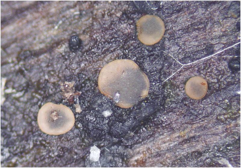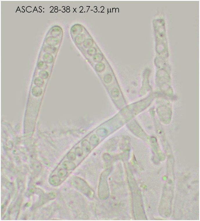 He recogido esta orbilia creciendo sobre madera de haya descortezada y húmeda, en una zona de escorrentía. De color naranja-asalmonado alcanzan tamaño de hasta 0.55mm.