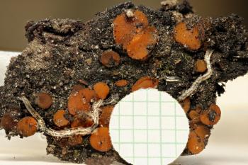 Setae seemed to be only on the bottom of the cups an were very hard to scoop up had broke away and were mostly in the substrate., The hairs were either were aseptate or maybe one septate and very long (up to .5mm) and light brown or almost hyaline.