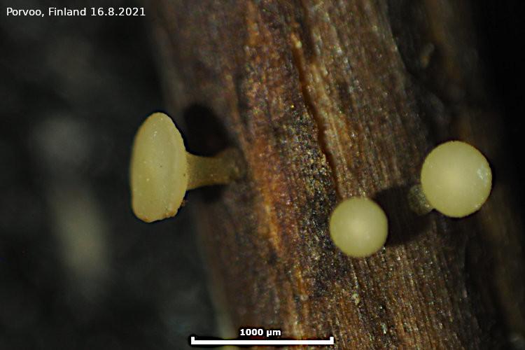 These rather dull Hymenoscyphus fruitbodies were growing on dead herbaceous stems.
