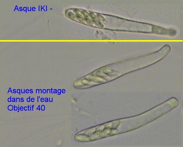 D'autre part je n'ai pas observé de réaction IKI+ au sommet des asques, cela pouvant éventuellement venir du fait que mon lugol est périmé.