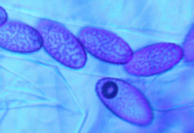 Tout charctères justent bien pour S. radiculata, mais les spores me semblent un peu trop grandes: 16-16,5 x 7,8-8,2 µm.