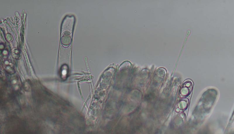 Paraphyse 2,1 (mi-hauteur) – 4,5 µm (apex) de largueur.