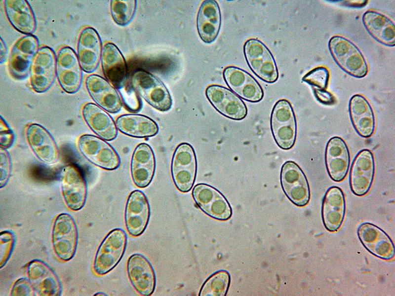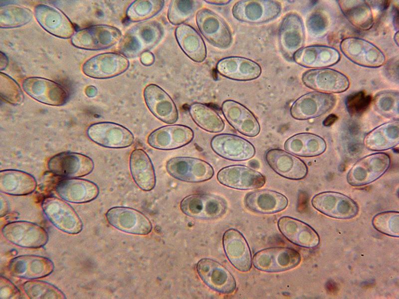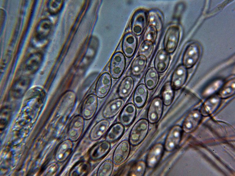 Ascas octospóricas sin reacción al melzer del aparato apical y con croziers en su base.