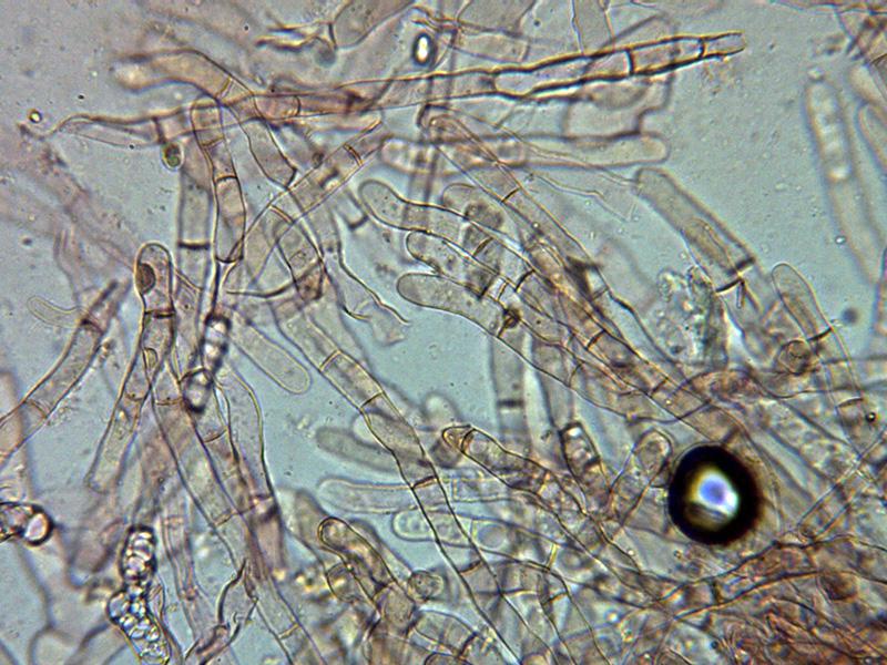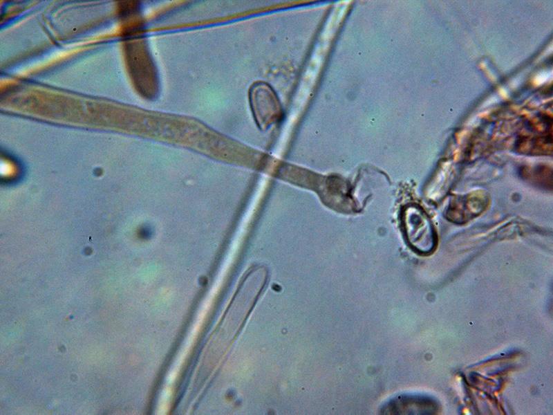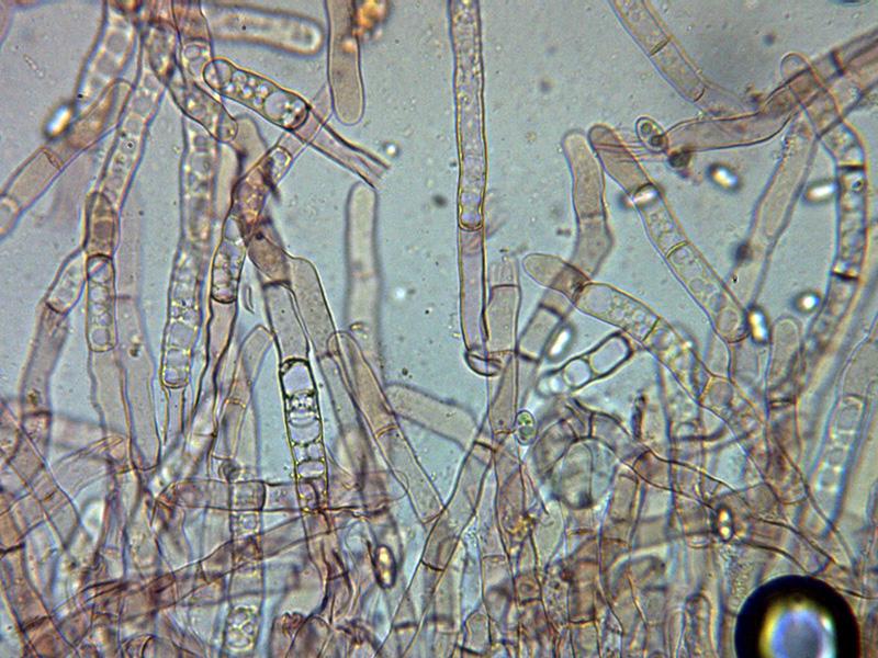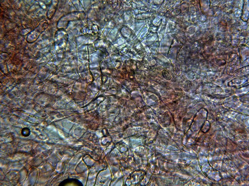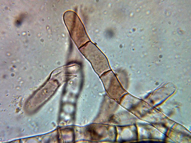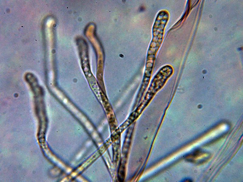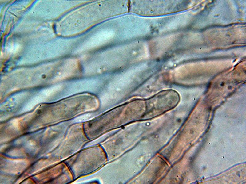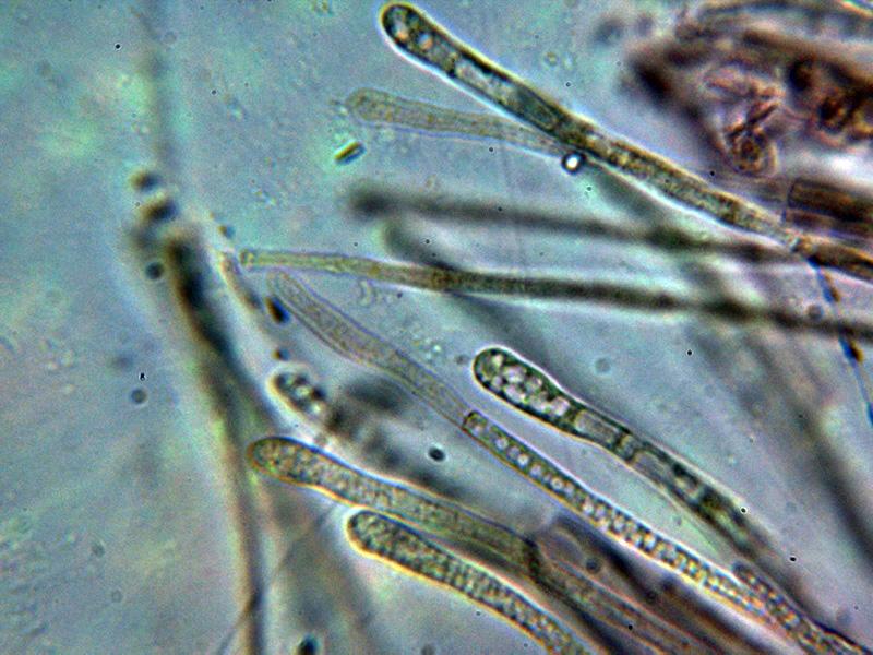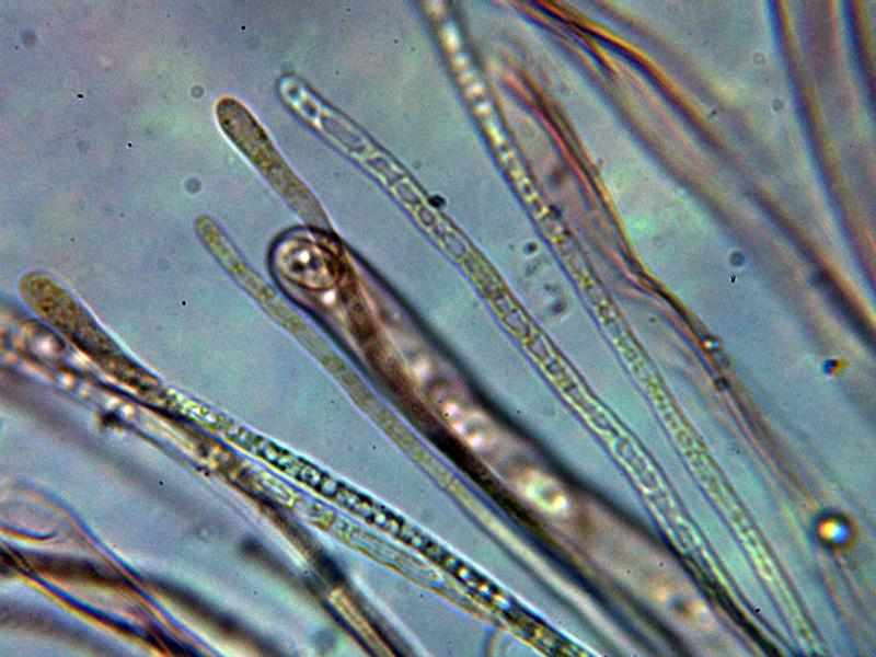 Pelos externos hialinos, muy septados y terminando en formas redondeadas.