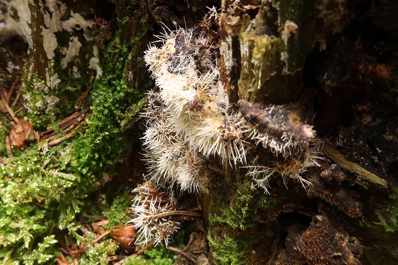 Unos Synnemata brotando de forma masiva sobre un tocón de muy probablemente abeto, con una base amarillenta común y esta sobre un contexto de color negro que podría corresponder a una Xylariaceae, por lo que tampoco descarto que pudiera tratarse del anamorfo de esta.