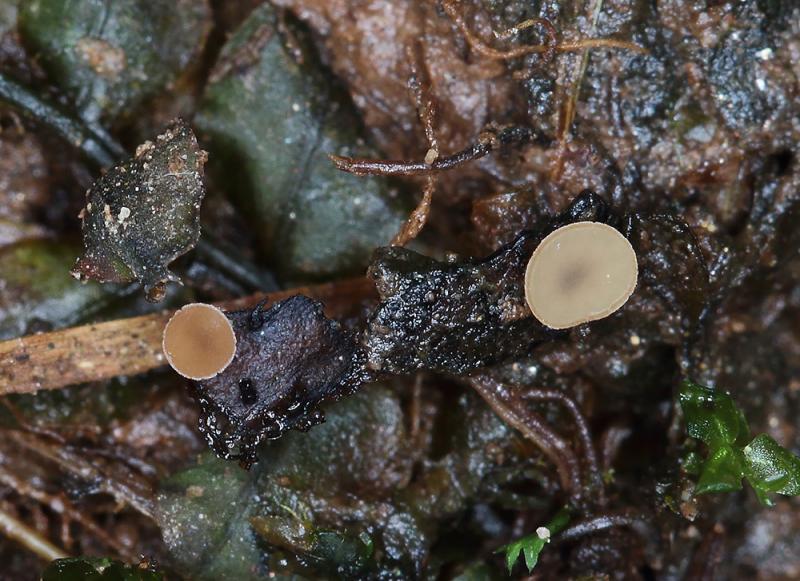 Same lake, same date (27th of July, 1700 m asl). On mummified remnants of Conocephalum and in vicinity of Alchemilla and Carex sp. I have not found any sclerotia parts and substrate is always mix of dead Conocephalum parts and other unidentified plant remnants.
