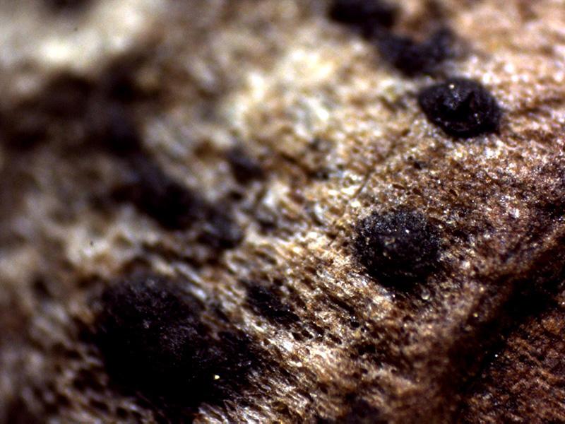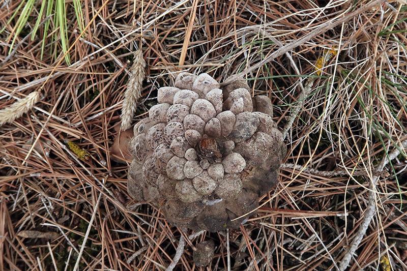 Un Pleosporal del pasado viernes sobre la superficie de una piña de Pinus halepensis.