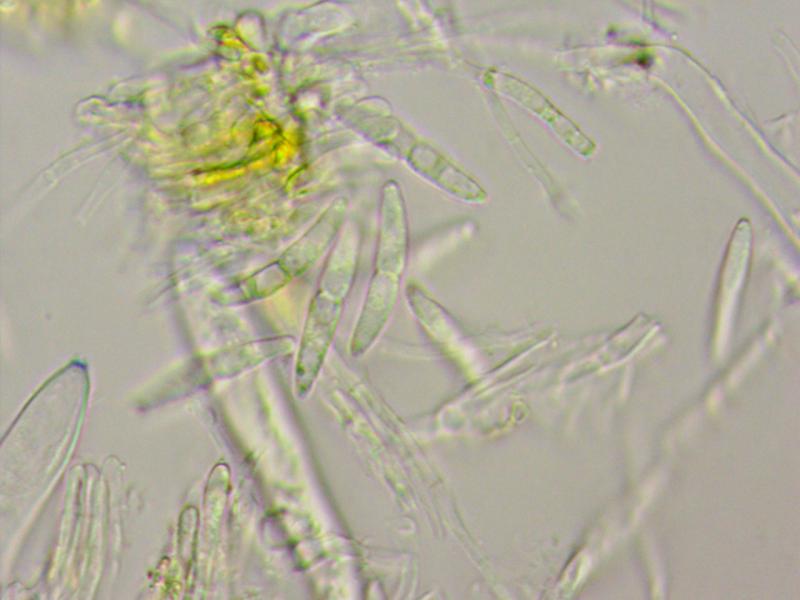 Ascospores fusiform, straight to slightly curved, 19-24x2.5-3 µm, 1(-3)-septate, constricted at the middle septum, OCI 0-1, smooth, hyaline.