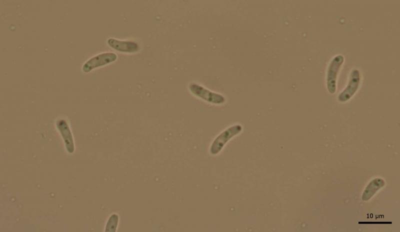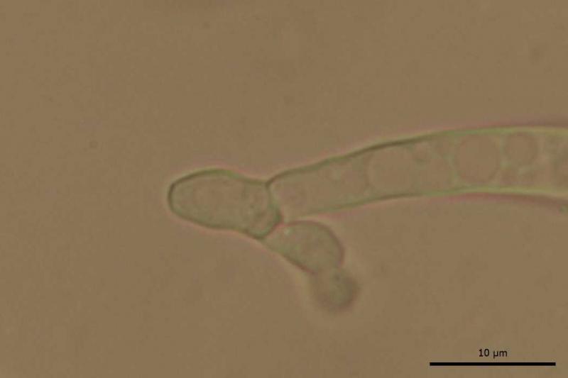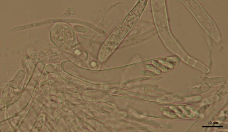 Ascospores hyaline, sometimes septate, (7.6) 9.7 - 12.1 (13.7) × (2.4) 2.7 - 3.1 (3.4) µm