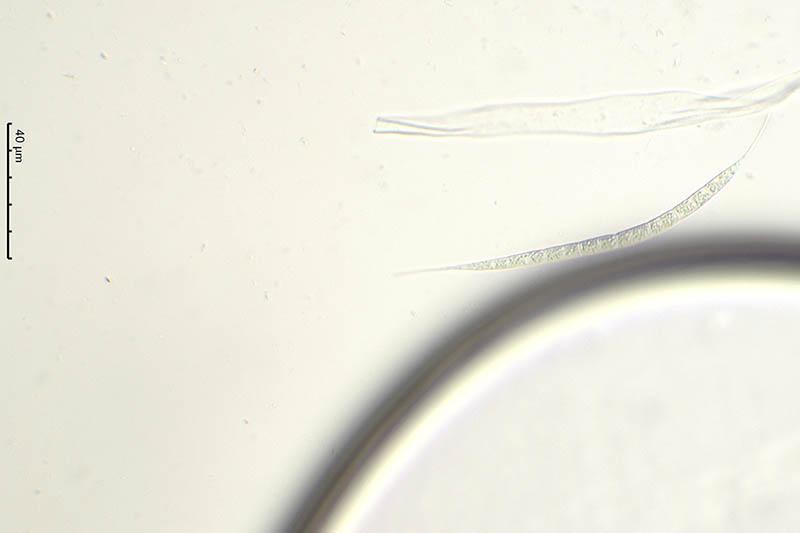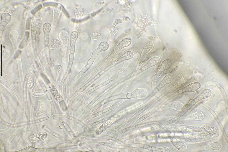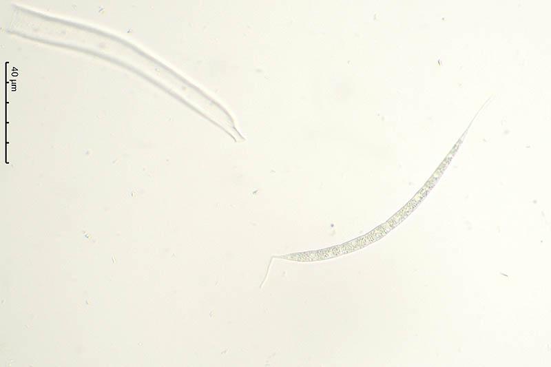 Esporas de 100-150 x 4,5-5 micras.