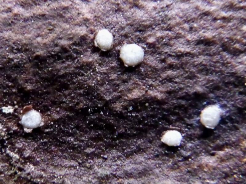 A week ago in my fiels trip I noticed some small white dots (~1 mm in diameter) on the bark of a pine tree; This occurs at the Park in Monsanto, Lisboa, Portugal; I was convinced that it was a myxomycete emerging; I collected a sample and keep in moist habitat inside a transparent box at room temperature; Now, analyzing it I got the surprise of whatching at a ascomycota;