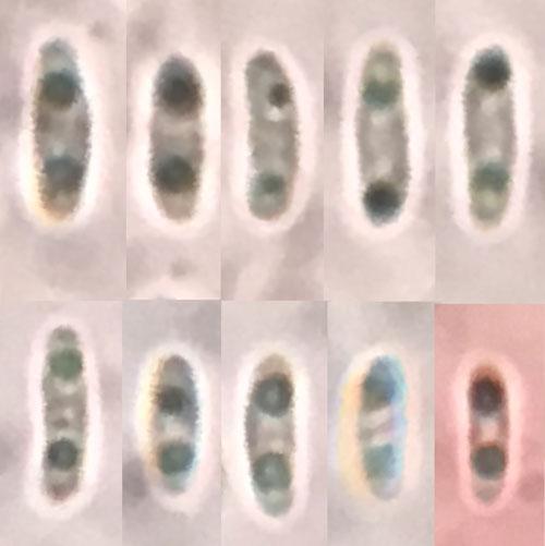 Spores bi-guttulate, 4.8-7 x 1.3-2µm.