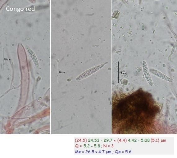 - asci with croziers, J+, spore sizes: Me: 26.5 x 4.7 µm N = 3