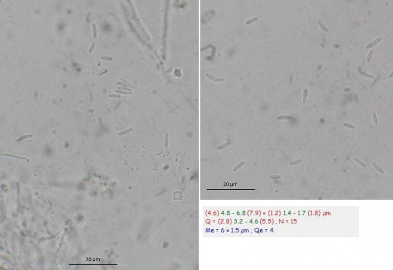 Asci with croziers, IKI-, spore sizes: Me: 6 x 1.5 µm N = 15