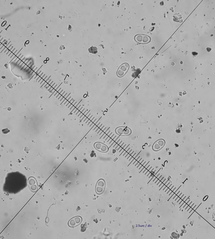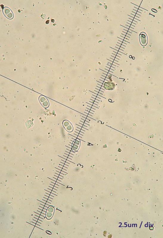 - Spores (13.6) 13.8 - 15.2 (15.5) × (7.6) 7.9 - 9 (9.5) µm
