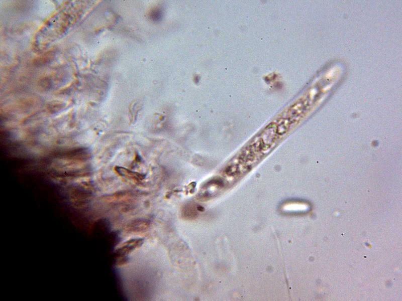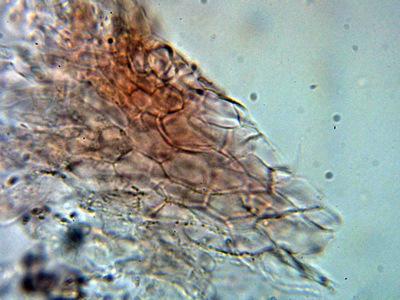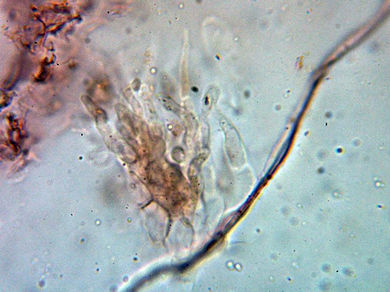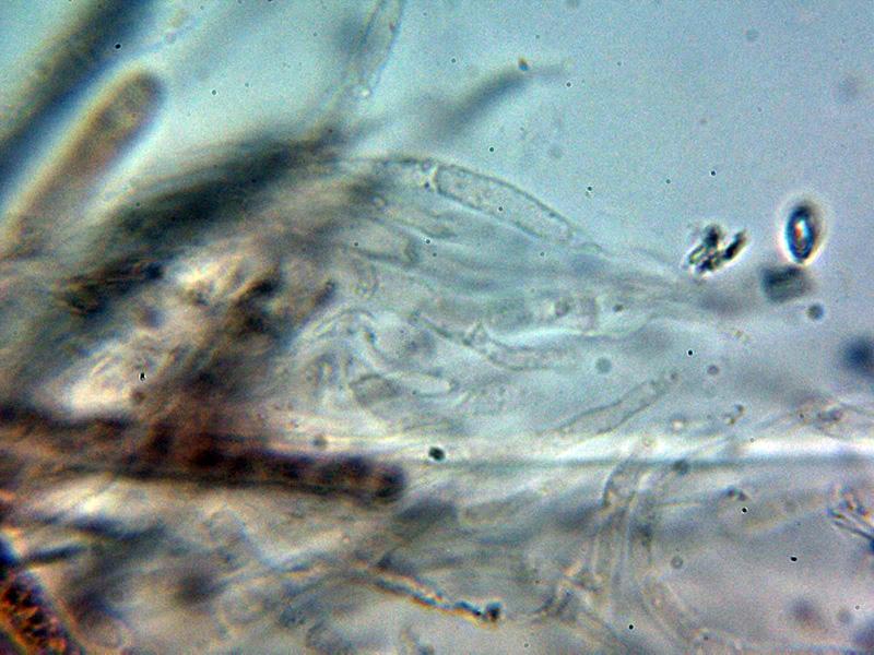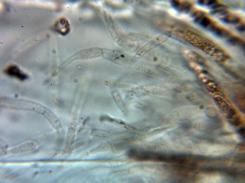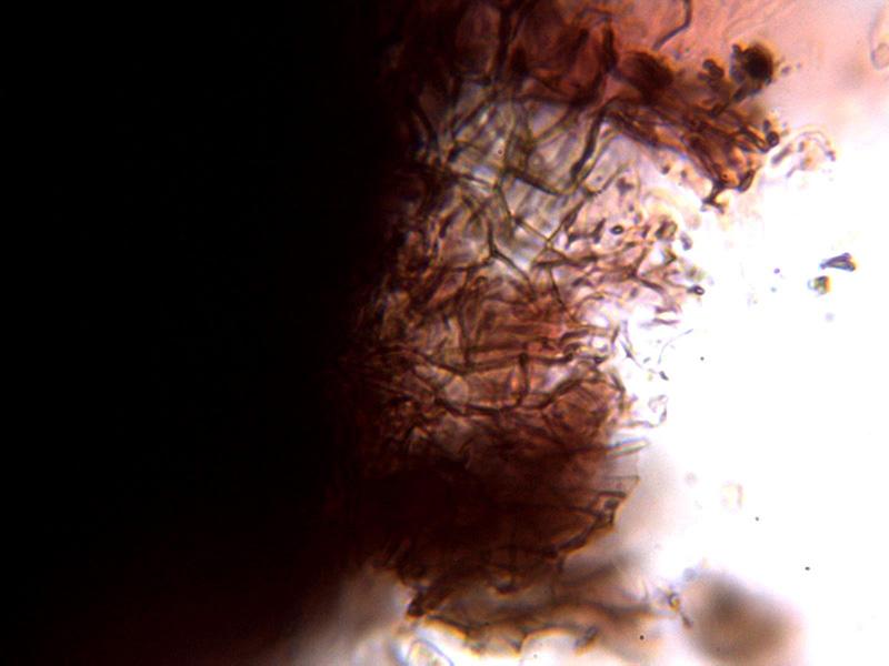 Hifas del excípulo por debajo del himenio hialinas y de forma angular.