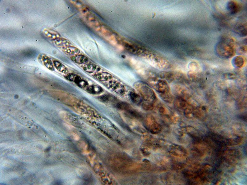 Gracias Enrique, las características encajan a la perfección, he estado repasando mis imágenes con esporas y en algunas son bien visibles las estrías longitudinales características, parece bastante claro lo de Lentomitella, habrá que buscar por ahí.