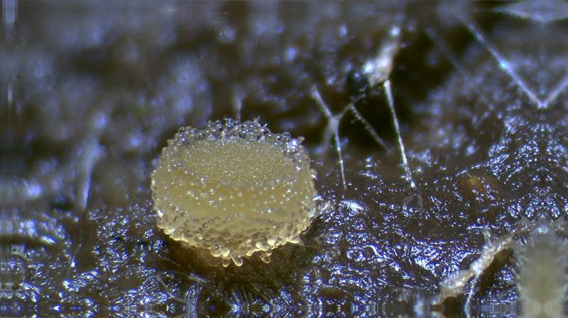 These 0.5 mm diam. acervuli were breaking through