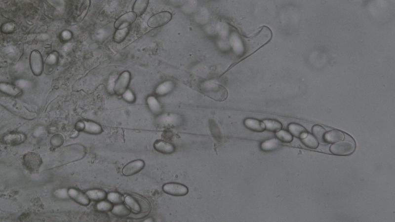 Spores: uniseriate; oval; 14.0-15.5x7.7-8.2