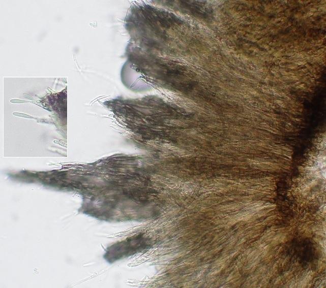 2 Species: Peroneutypa scoparia? (very difficult to find asci, too young?) and unknown anamorph near to eachother both with Harpographium?