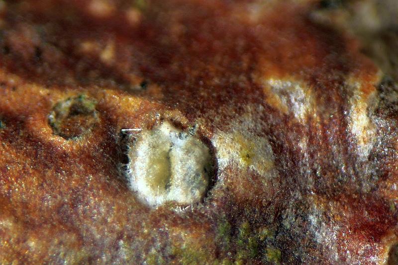 This ostropalean fungus grew on hanging Rubus stems in central-western Spain. The erumpent ascomata are very similar to those of Ostropa barbara, but the orange-coloured covering seems to differ from that of this species. I have not found anything in Sherwood's monograph. so do you have any ideas?