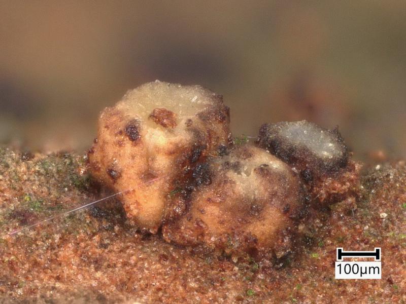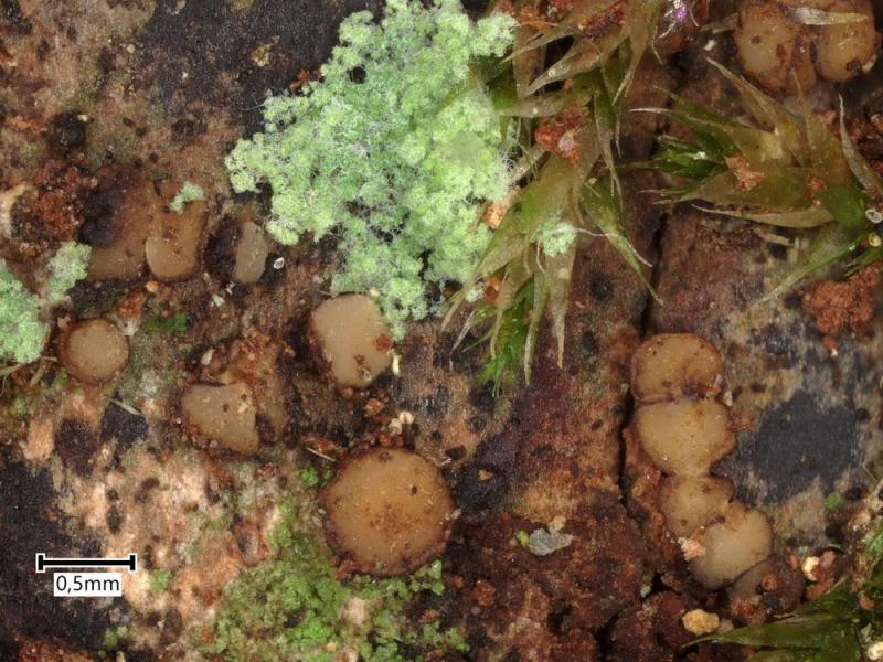 The apothecia are apparently non-lichenized.