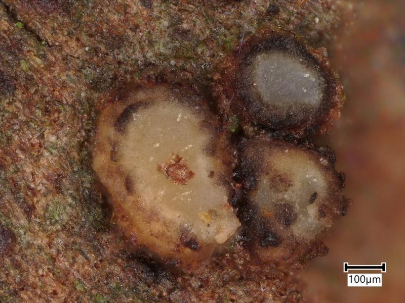 Re : Lecanoromycetes? Discomycete on Alnus bark