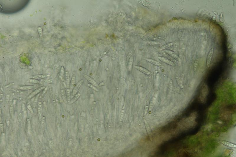 we are hoping that someone might recognize this strange discomycete found on bark of living Alnus glutinosa (leg. A. Gallé). An ITS sequence was produced by M. Grube and further ITS and LSU sequences by J. Karakehian. The latter point towards a relationship to Lecanoromycetes.