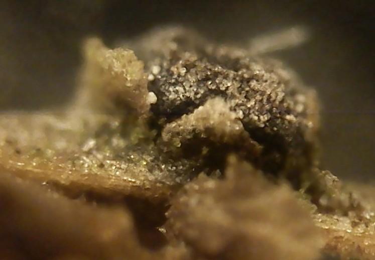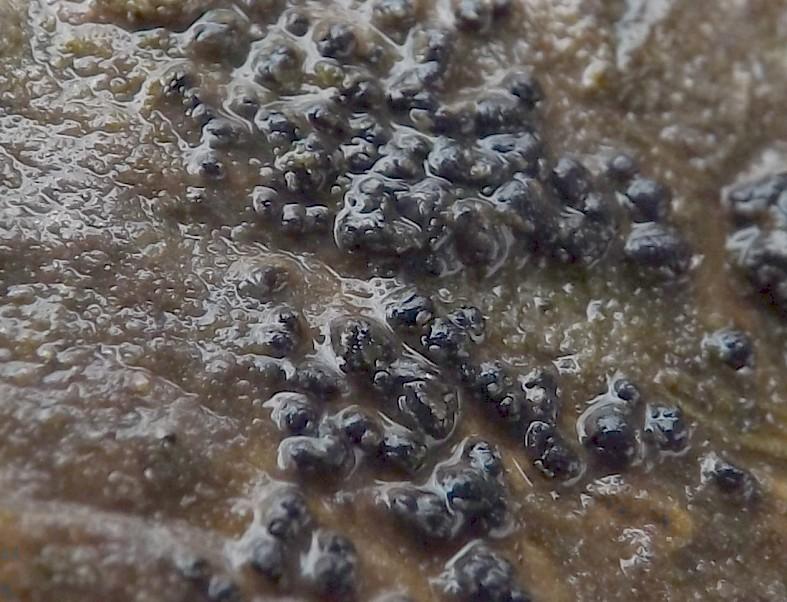 These 0.5 mm diam. acervuli were breaking through