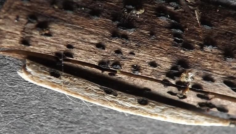 Black perithecia on the Fraxinus twig.