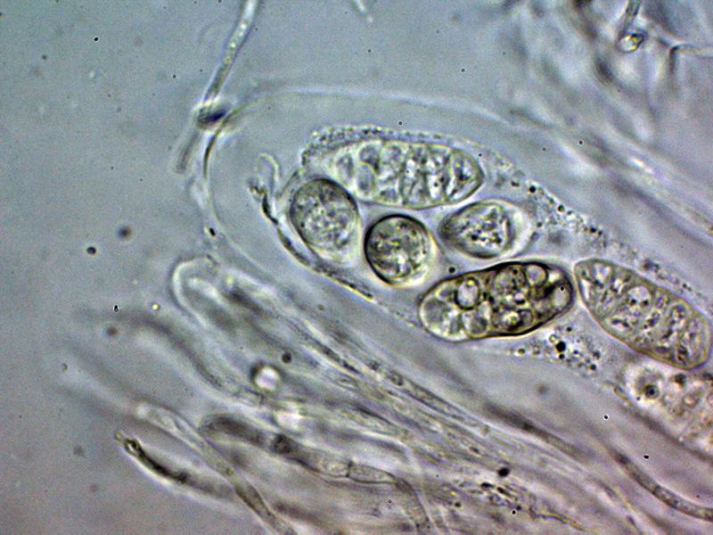 Ascos octospóricos con unas medidas de 116.4 - 147.7 × 33.6 - 45.7 µm., sin reacción aparente al Melzer.