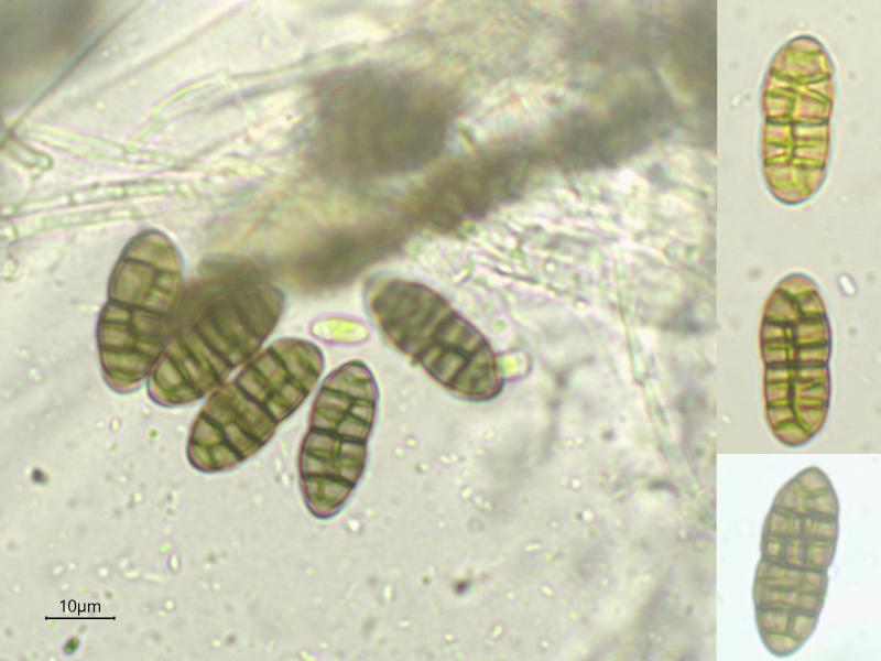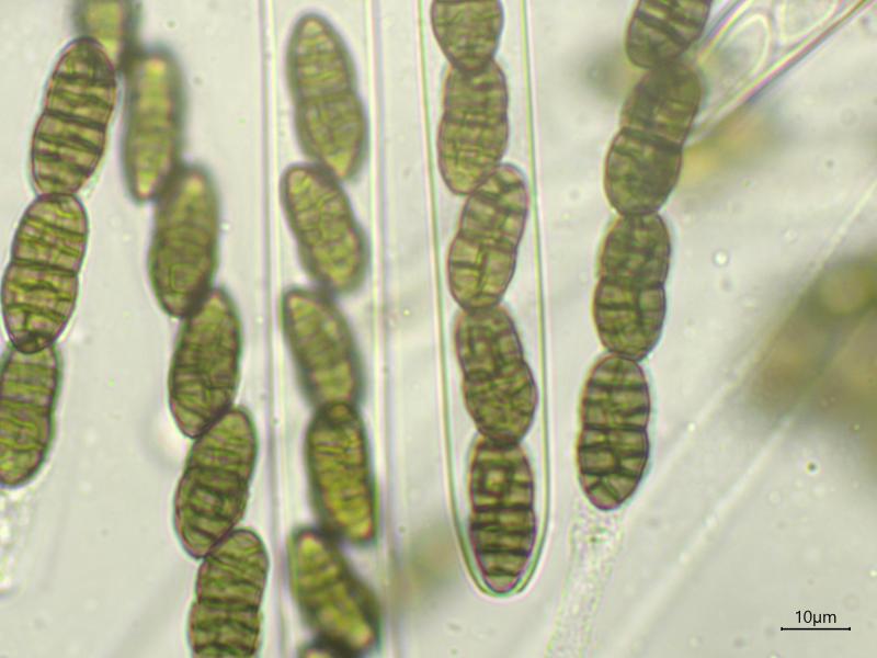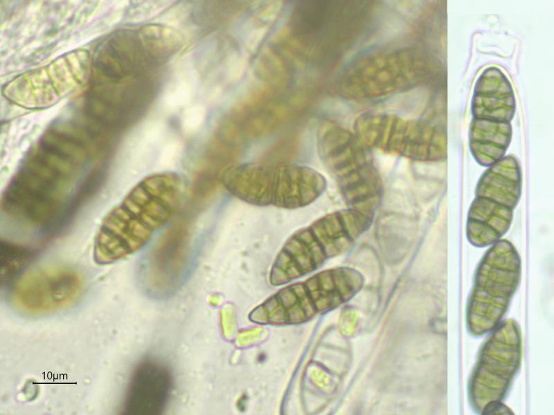 A few weeks ago I found a ascomycete with muriform spores on Ulex europaeus (The Netherlands). The only species with muriform spores mentioned by Ellis & Ellis 1997 on Ulex is Cucurbitaria elongata. However, C. elongata doesn't seem to be a good match.