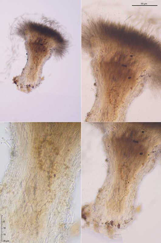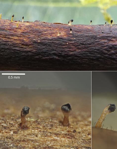 What a nice little fungus, your post deserves a reply even though I can't be of much help. It seems most similar to Morrisographium but there do not seem to be any species that match yours, and the pictures I have seen have a darker stipe and paler spore mass. It would be worth sending to Keith Seifert for his comments, I think he would be interested.