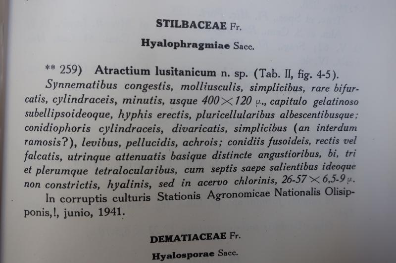 You could well be right, I was thinking of Atractium in its incorrect sense as a synonym of Fusarium. It is possible that you have A. lusitanicum, but I can't find any description of this species and it could be a Fusarium; the suggestion is only due to geographical proximity. If I can get a scan of the description, I'll send it on to you.