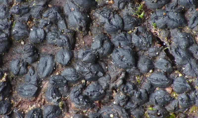 These 0.5 mm diam. acervuli were breaking through