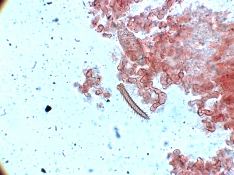 I think the long, hairy thing in the middle of the last pic looks like a part of some bug.