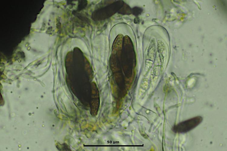 The fruitbodies aren't in the best condition and must've developed last season. But there were spores to be found and some asci as well.