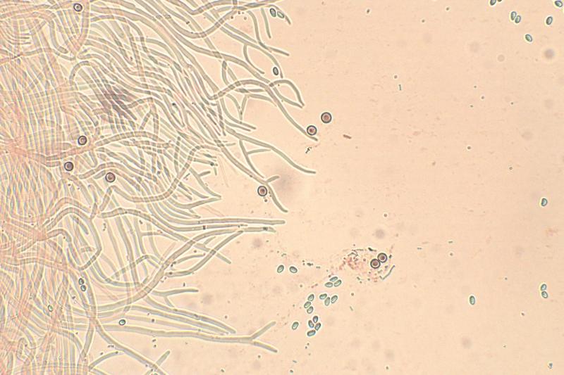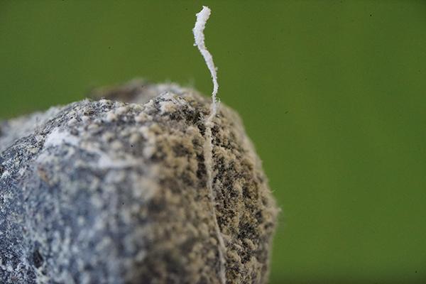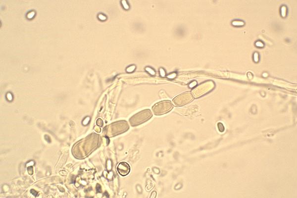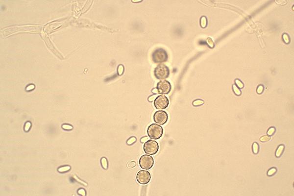 These 0.5 mm diam. acervuli were breaking through