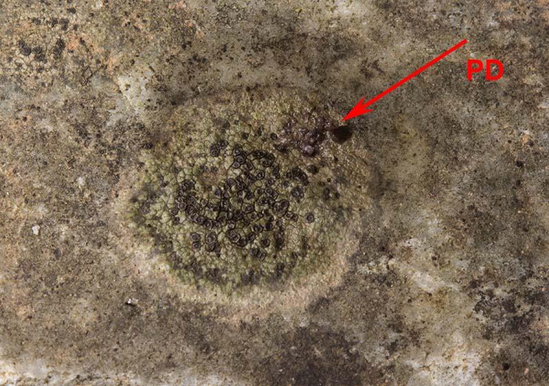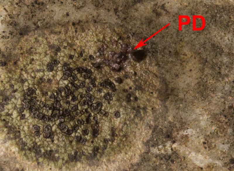 J'étudie un Rhizocarpon et j'ai besoin de connaître sa réaction à la paraphénylènediamine pour l'identifier. C'est la première fois que j'utilise ce réactif et je ne sais pas si je dois considérer ma réaction comme positive ou négative. Je m'attendais à un contrecoup comme Xanthoria avec KOH, mais ce n'est pas le cas. De plus, les cristaux de paraphénylènediamine sont devenus roses mais le thalle est inchangé.