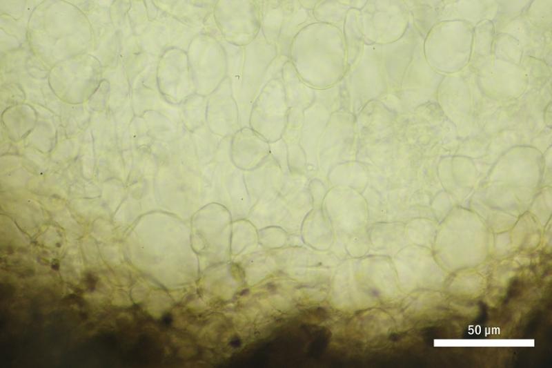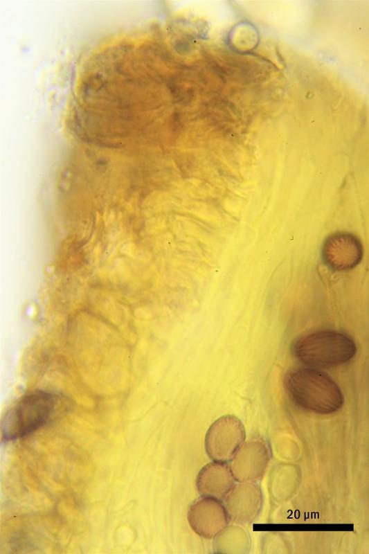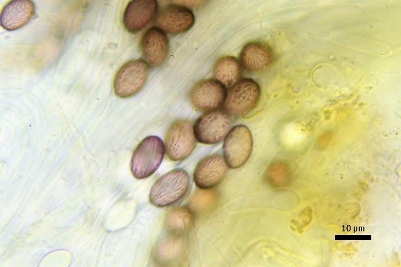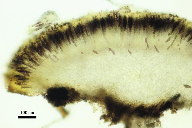 These 0.5 mm diam. acervuli were breaking through