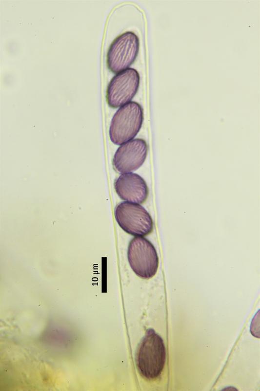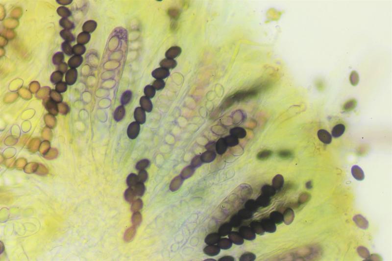 Apotecios de hasta 2mm, de color purpura.