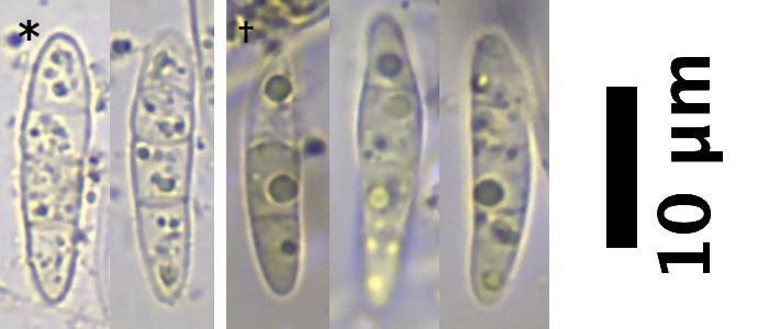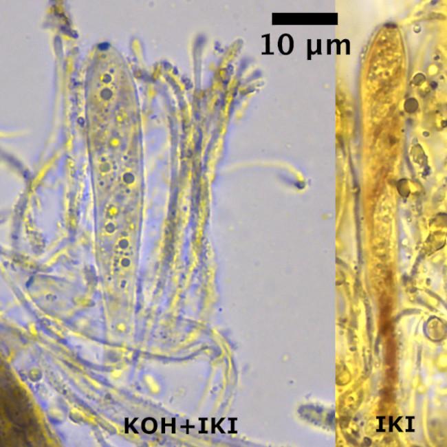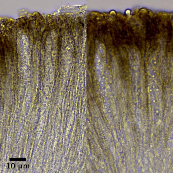 GrüeziI collected this yesterday in dry state and it is mostly dead. Substrate is Fagus sylvatica. Apothecia are up to about 0.5mm in diameter and full of lipid contents, so much that it accumulates on the surface of some apothecia. Ascus apex is red and sometimes blue in IKI and blue when pretreated with KOH. I had a hard time finding spores and most of them are at least partially dead. Their size is roughly 15.2 - 18.1 x 3.3 - 4.2