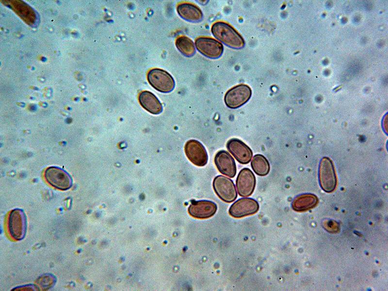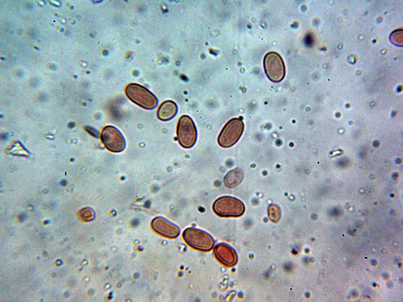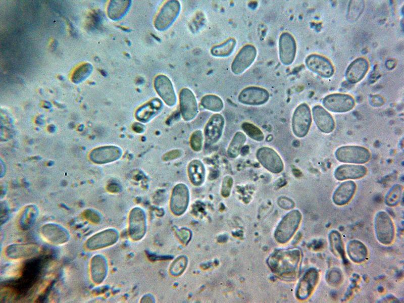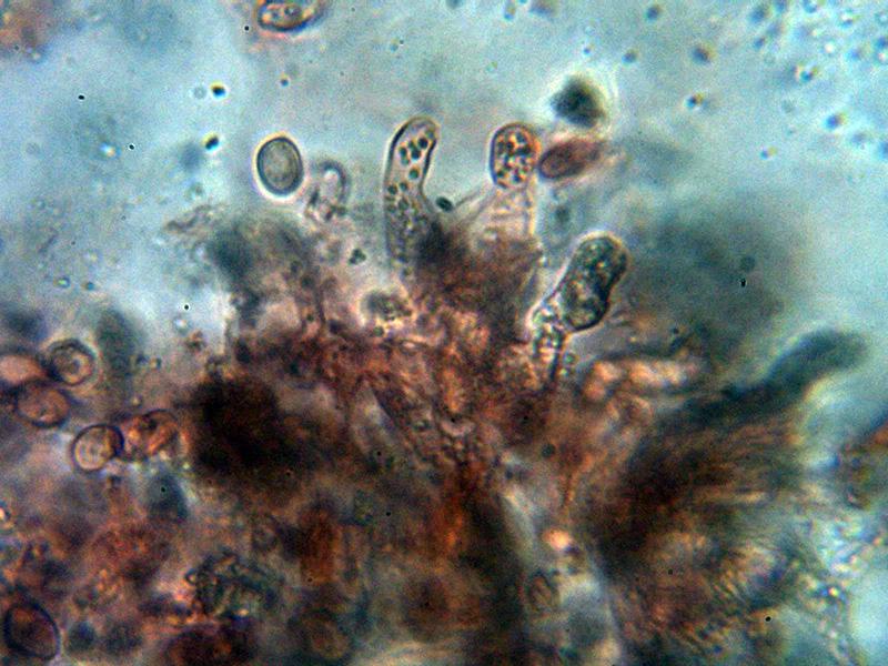 The spores seem to have an apiculus, which would suggest a basidiomycete. Maybe a young Sphaerobolus stellatus?