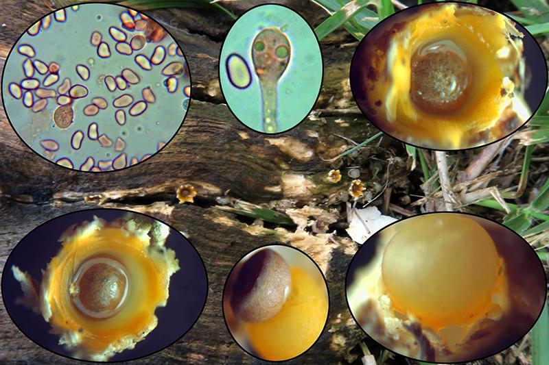 Muchas gracias a los dos, el Sphaerobolus stellatus lo tenía estudiado ya más desarrollado sobre excrementos de caballo y sobre madera muy degradada, añado unas imágenes de estudios míos que en su momento consideré como Sphaerobolus stellatus.