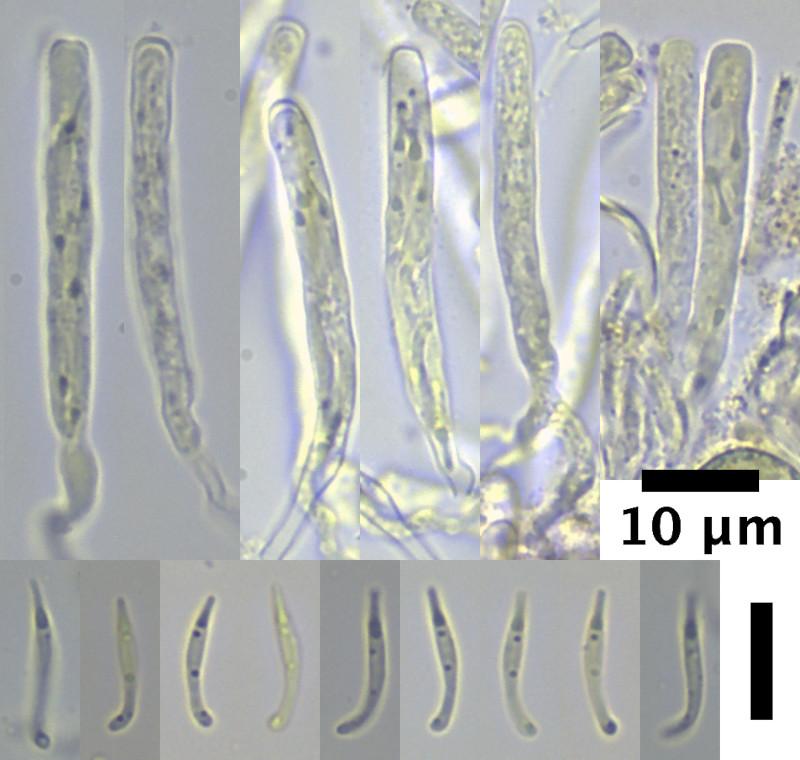 Spores are about 11 - 14.6 x 1.3 - 1.5µm (actual length 11.7 - 14.9µm)