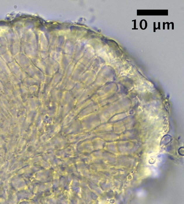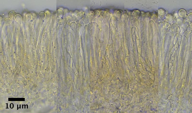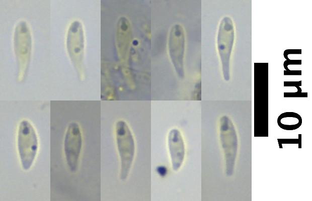 The spores in the picture measure 5.8 - 10.2 x 2.0 - 2.6µm