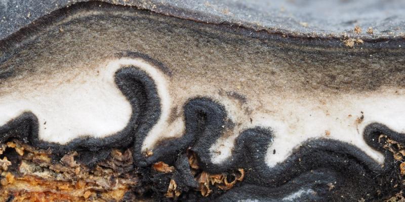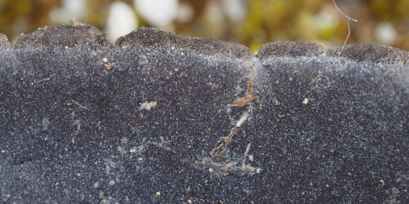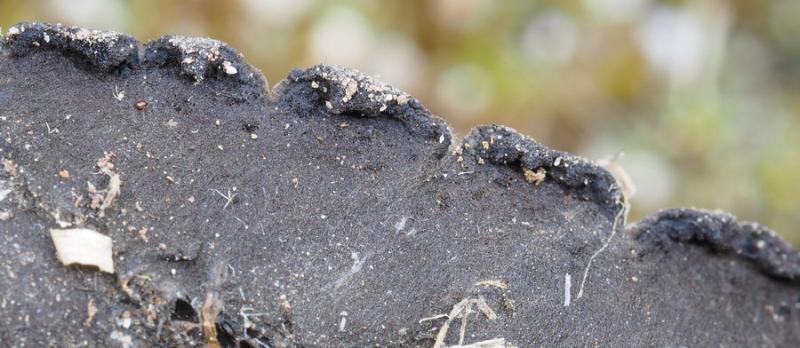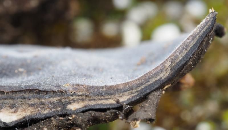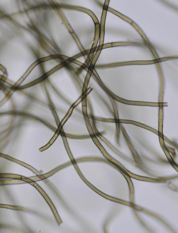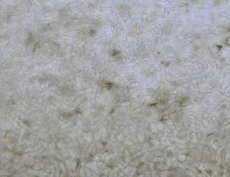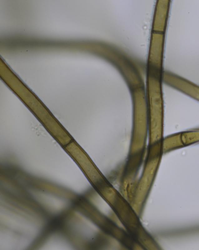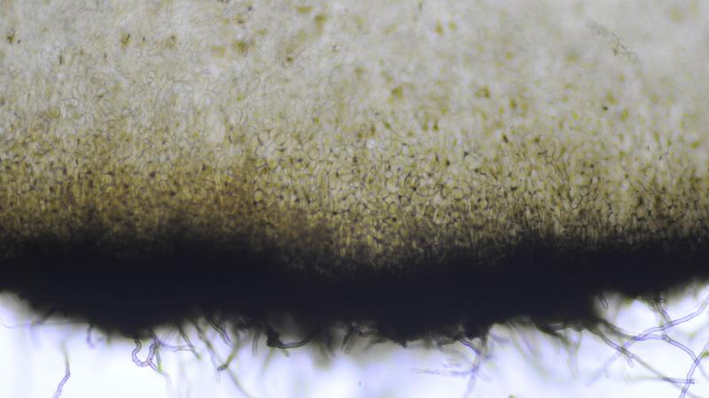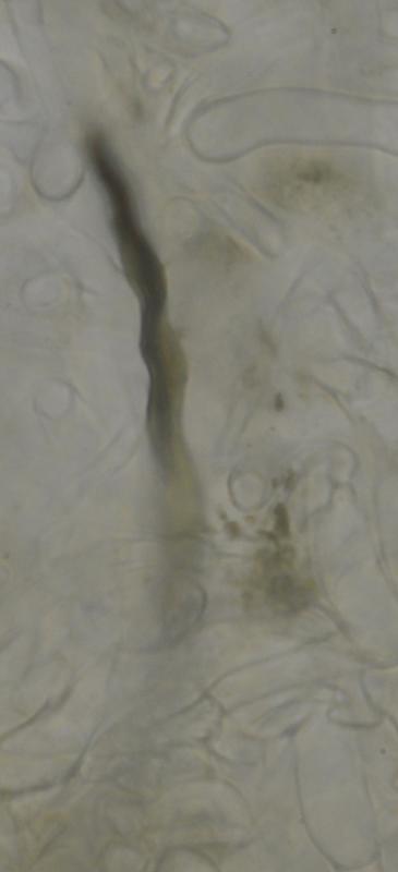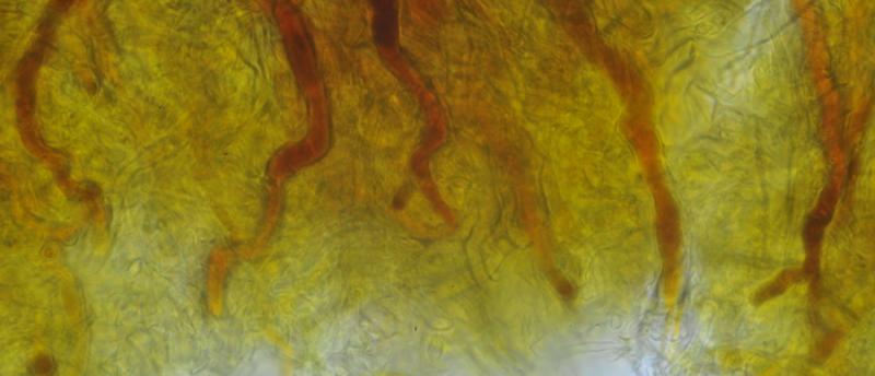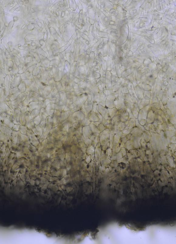 El excípulo ectal tiene textura subglobulosa-angularis, de células oscuras, marrones, con numerosos pelos marrones, largos, sinuosos, septados.